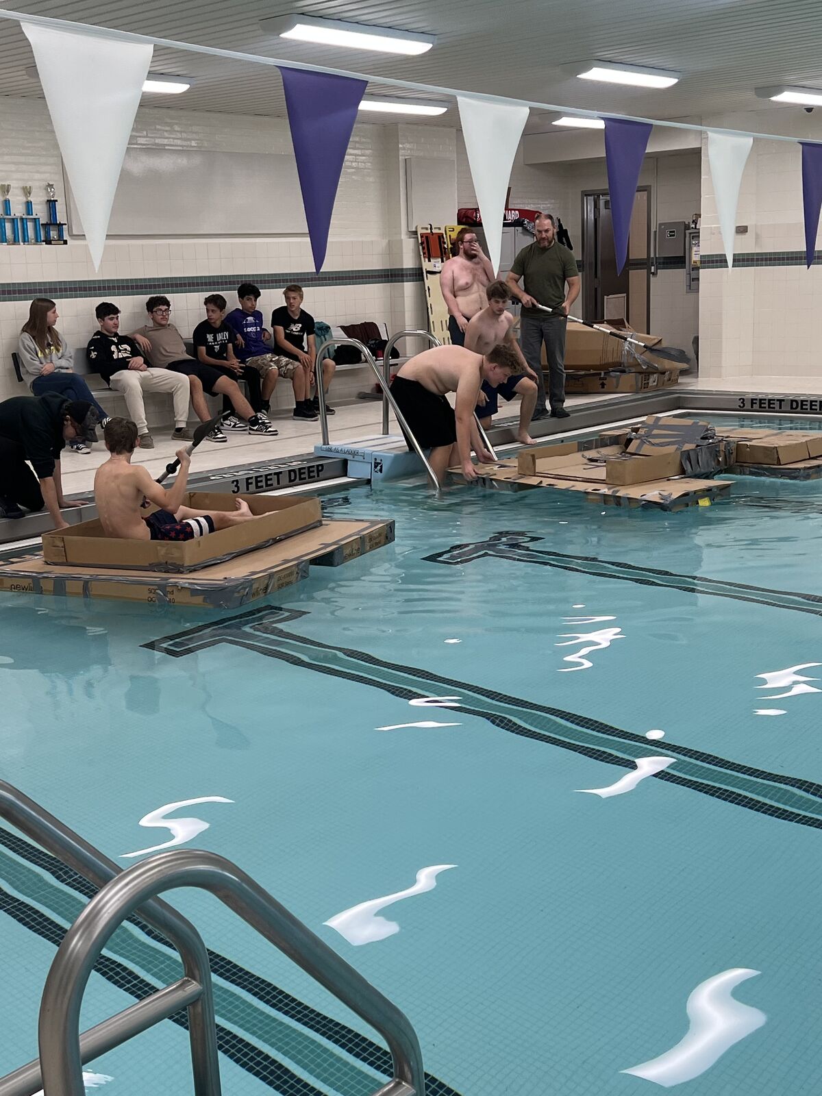 Principle of engineering students built four cardboard boats this year as part of their first unit with Mr. Habermehl. The top boat was Russell Errington, who built a boat similar to a "bull boat" mad. . .
